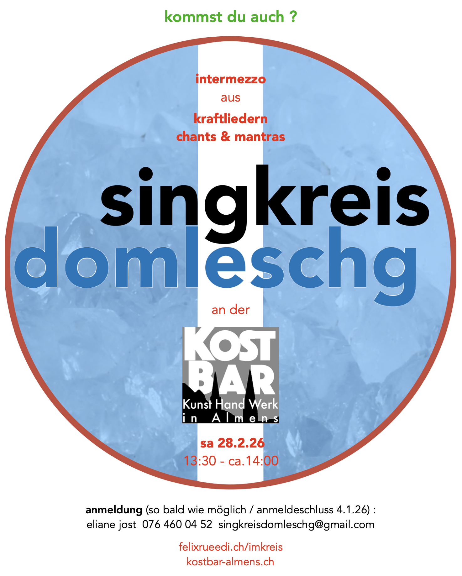 28.02. SINGKREIS DOMLESCHG, IMKREIS, intermezzo an der kostbar-almens