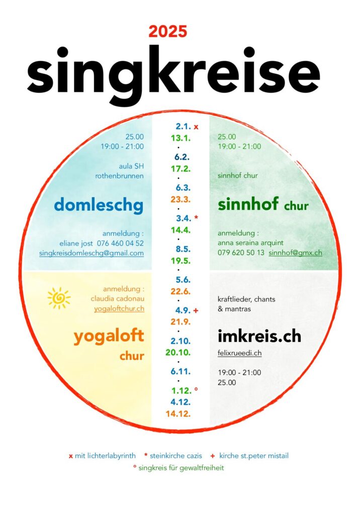 ab 2010 singkreis für kraftlieder, chants und mantras / offenes singen / „imkreis“, rothenbrunnen und chur, steinkirche cazis und st.peter mistail